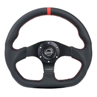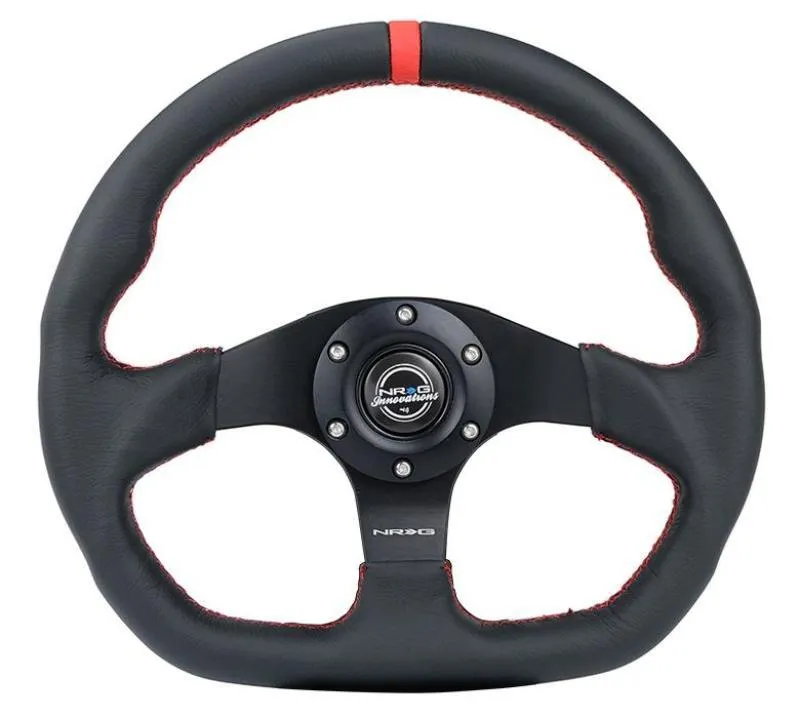 NRG Reinforced Steering Wheel (320mm) Sport Leather Flat Bottom w/ Red Center Mark/ Red Stitching