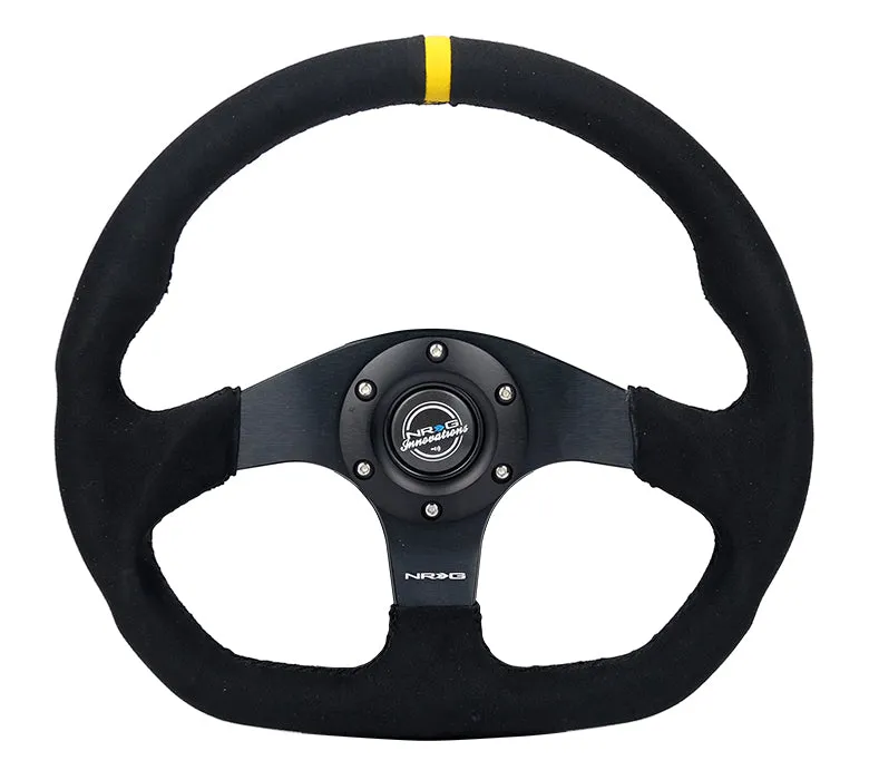 NRG Reinforced Steering Wheel (320mm) Sport Alcantara Flat Bottom w/ Yellow Center Mark