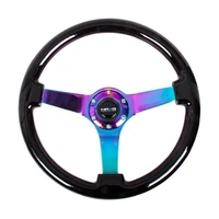 NRG Reinforced Steering Wheel (350mm / 3in Deep) Classic Blk Wood Grain w/Neochrome 3-Spoke Center