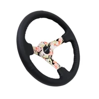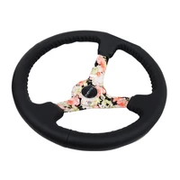 NRG Reinforced Steering Wheel (350mm / 3in. Deep) Blk Leather Floral Dipped w/ Blk Baseball Stitch