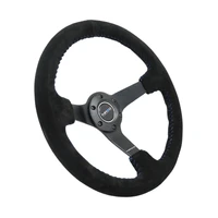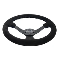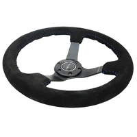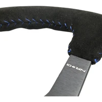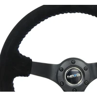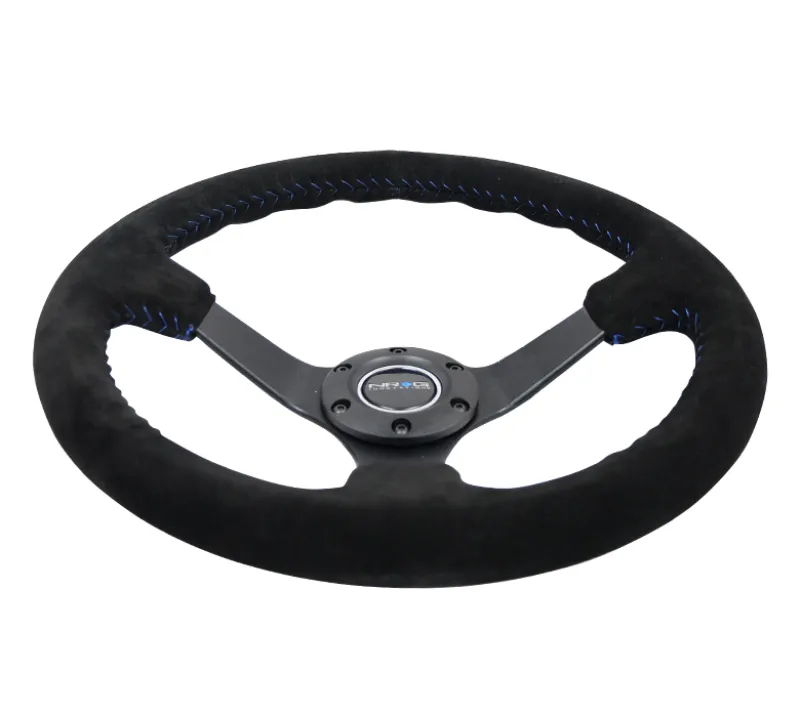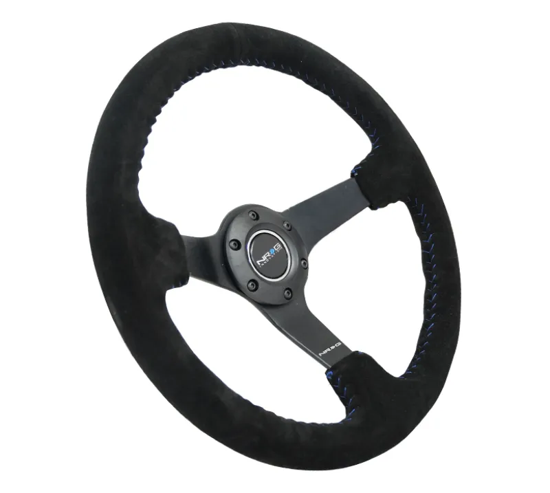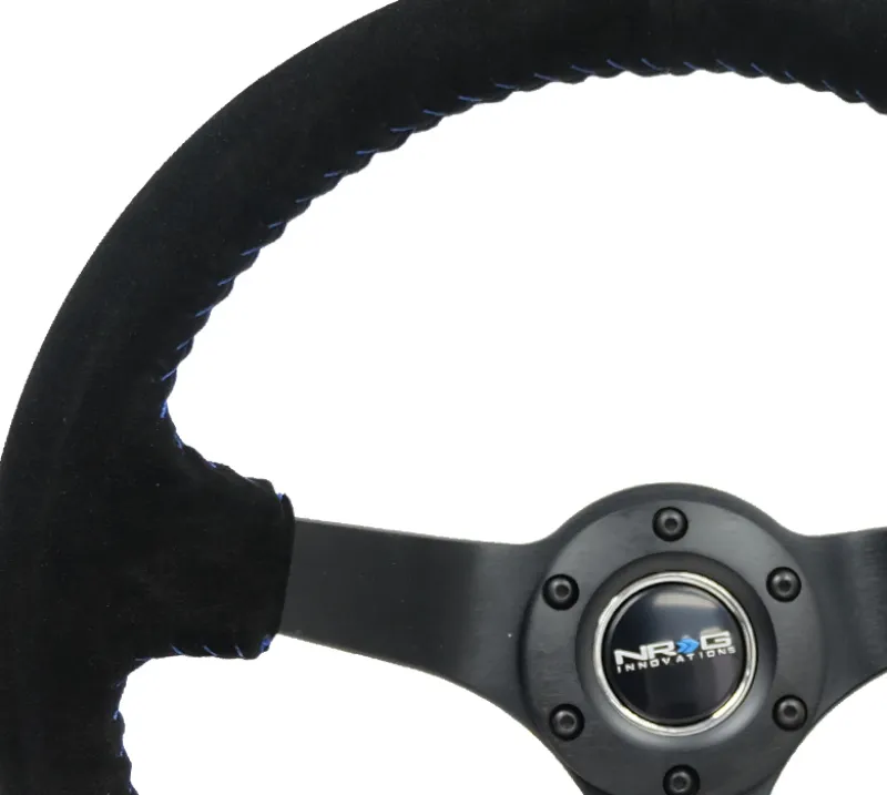 NRG Reinforced Steering Wheel (350mm / 3in. Deep) Blk Suede/Blue BBall Stitch w/5mm Matte Blk Spokes