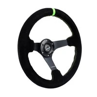 NRG Reinforced Steering Wheel 350mm/3in. Deep Blk Suede/ Neon Green Stitch w/5mm Matte Black Spoke
