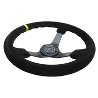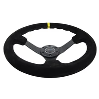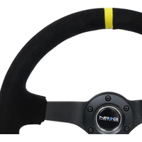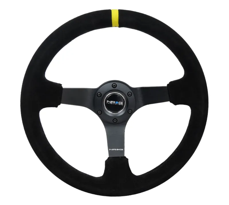 NRG Reinforced Steering Wheel (350mm / 3in. Deep) Blk Suede/X-Stitch w/5mm Blk Spoke & Yellow CM
