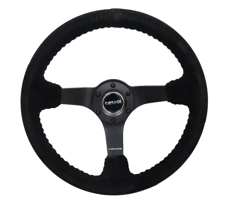NRG Reinforced Steering Wheel (350mm / 3in. Deep) Blk Alcantara w/ Blk Stitching - Matte Black Spoke
