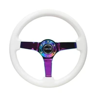 NRG Reinforced Steering Wheel (350mm / 3in. Deep) Classic White w/4mm Neochrome Solid 3-Spoke