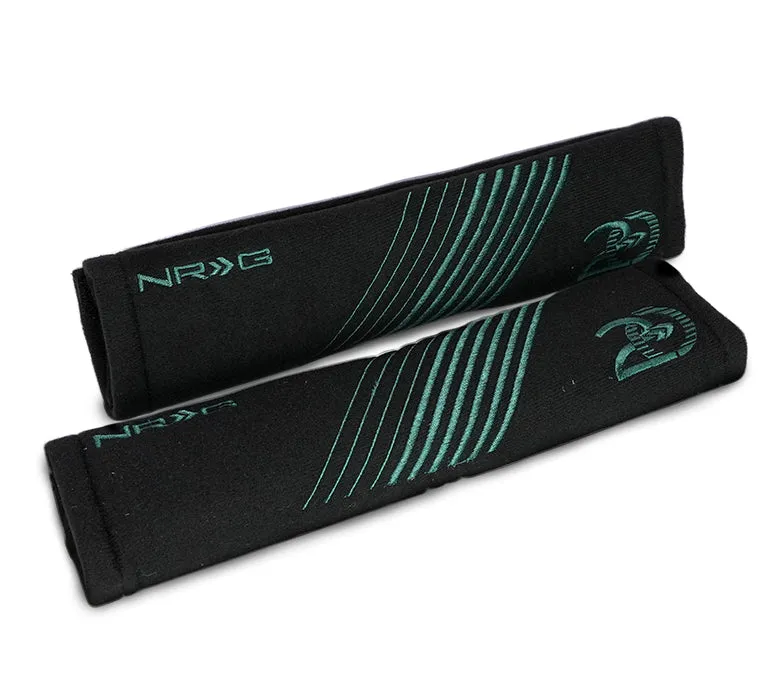 NRG Seat Belt Pads - 20 Year Anniversary - 11in. Length Black w/ Emerald Green Stitching - 2pc