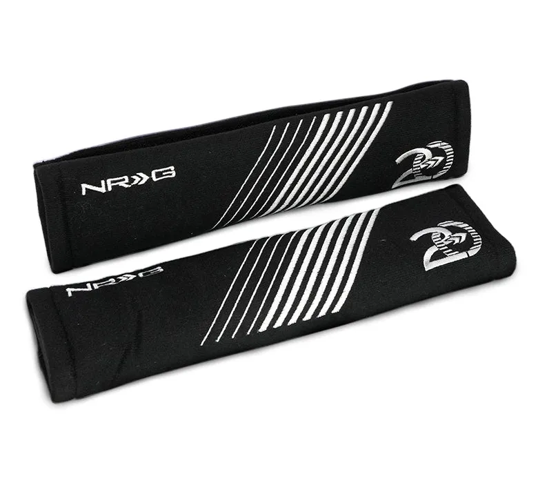 NRG Seat Belt Pads - 20 Year Anniversary - 11in. Length Black w/ Silver Stitching - 2pc