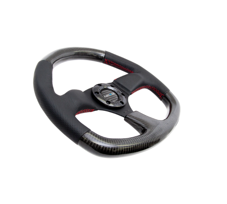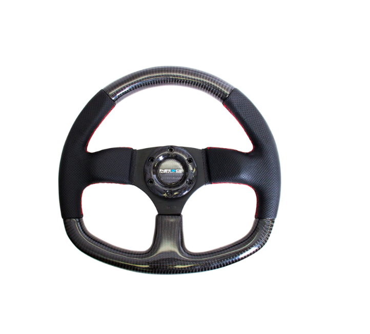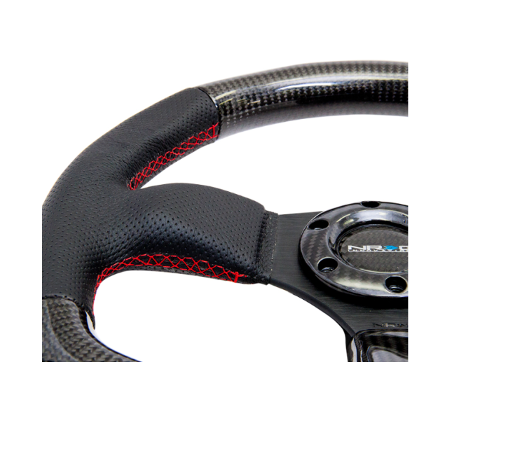On this page, you are looking at another fine example of a steering wheel from NRG's Carbon Fiber Series Steering Wheel line. This particular steering wheel features beautiful carbon fiber construction combined with leather.