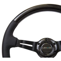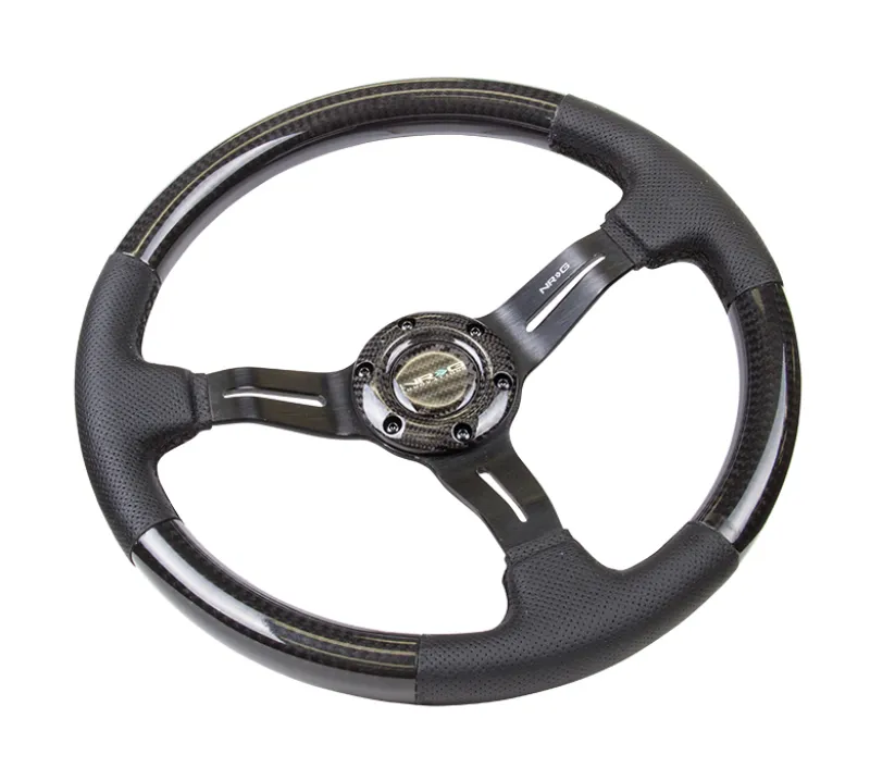 NRG Carbon Fiber Steering Wheel (350mm / 1.5in. Deep) Leather Trim w/Blk Stitch & Slit Cutout Spokes