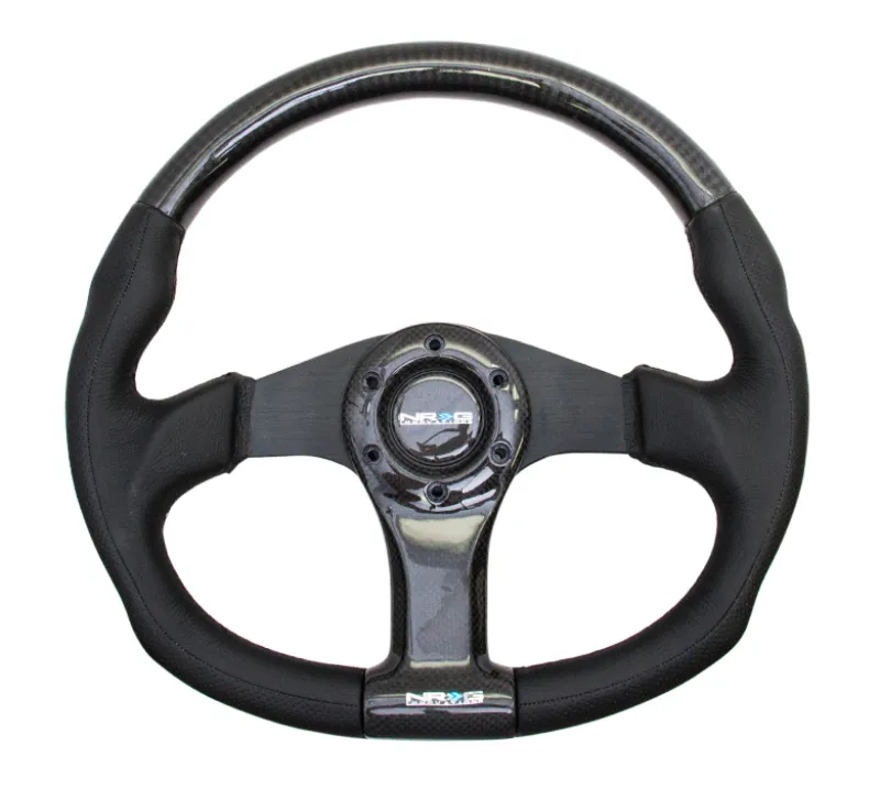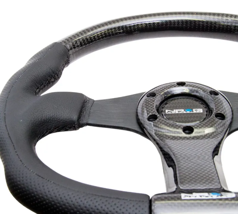 NRG Carbon Fiber Steering Wheel (350mm) Oval Shape Black w/Leather Trim