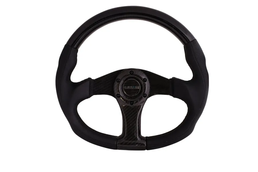 NRG Carbon Fiber Steering Wheel (350mm) Oval Shape w/Black Carbon & Leather Trim
