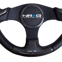 NRG Carbon Fiber Steering Wheel (350mm) Blk Frame Blk Stitching w/Rubber Cover Horn Button
