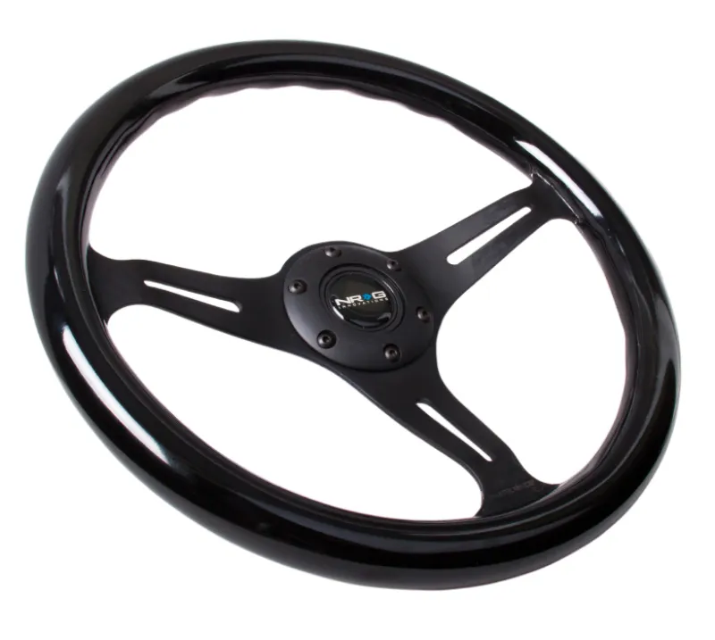 NRG Classic Wood Grain Steering Wheel (350mm) Black Paint Grip w/Black 3-Spoke Center