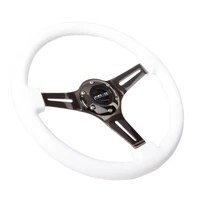 NRG Classic Wood Grain Steering Wheel (350mm) White Paint Grip w/Black 3-Spoke Center