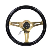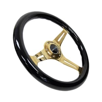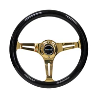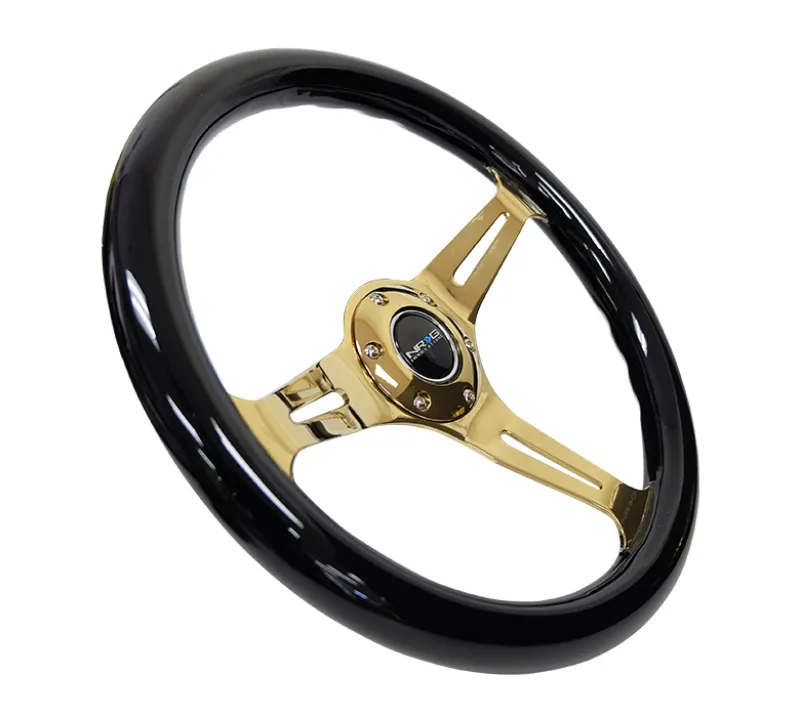 NRG Classic Wood Grain Steering Wheel (350mm) Black Grip w/Chrome Gold 3-Spoke Center