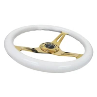NRG Classic Wood Grain Steering Wheel (350mm) White Grip w/Chrome Gold 3-Spoke Center