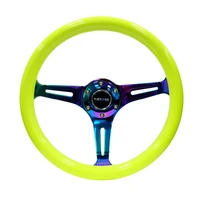 NRG Classic Wood Grain Steering Wheel (350mm) Neon Yellow Color w/Neochrome Spokes