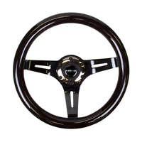 NRG Classic Wood Grain Steering Wheel (310mm) Black w/Black Chrome 3-Spoke Center
