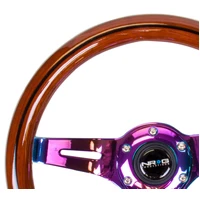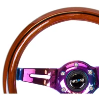 NRG Classic Wood Grain Steering Wheel (310mm) Dark Wood & Black Line Inlay w/Neochrome 3-Spoke Ctr.