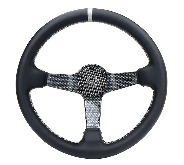 NRG Carbon Fiber Steering Wheel (350mm) Silver Carbon Fiber Center - Silver Stitching & Center Mark