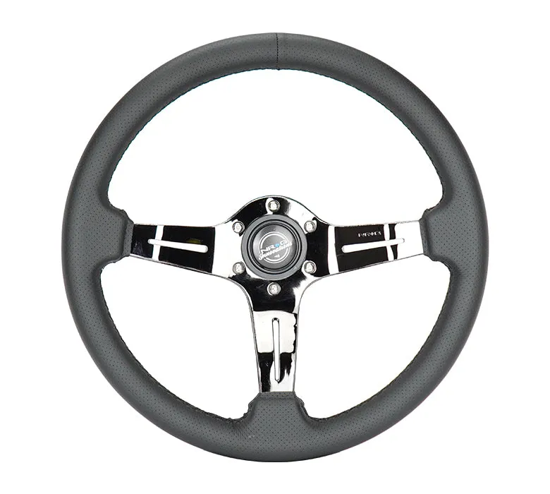 NRG Light Weight Gaming Steering Wheel - 350mm 3 Black Chrome Spokes Perforated Leather