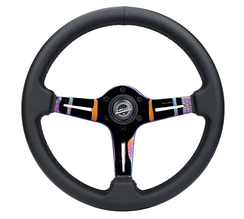 NRG Light Weight Gaming Steering Wheel - Splitz NeoChrome Silver Spokes Perforated Leather