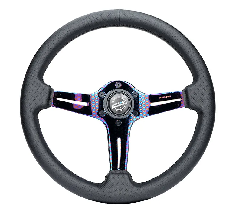 NRG Light Weight Gaming Steering Wheel - 350mm 3 NeoChrome Silver Spokes Perforated Leather
