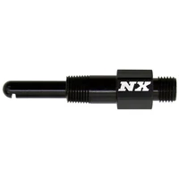 The Single Discharge Dry Nozzle features an Aluminum body anodized in Black as well as our NX logo etched in the side. The body itself features 1/8npt threads, as well a 90 degree discharge. The patented Single Discharge Dry Nozzle has the same internal diameter of a -4an line for maximum flow potential while ensuring excellent atomization for the ultimate in horsepower production and reliability.