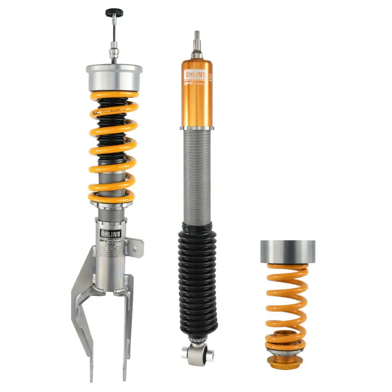With Öhlins Road & Track coil overs you will experience a car with blistering response times, improved bump absorption and a massive amount of grip to increase the safety when driving your car on the limit. The car will be easier to balance on the edge of what the tires can handle before losing grip. You will be much quicker on track. The DFV suspension prevents you from losing the racing line when hitting bumps or curbs. The DFV components within react quickly and keeps you in control of the car and in contact with the track. When driving to and from the track, just set the dampers in road mode for a more relaxed and comfortable drive, still with more grip and quicker response time than ever before.