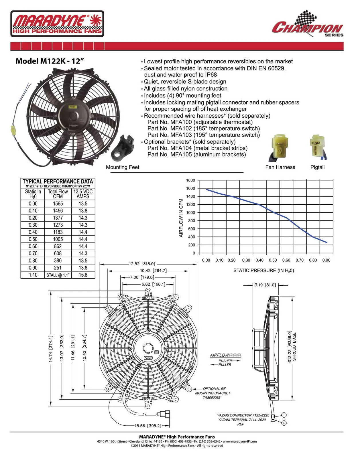 • Reversible fan blades/polarity for Push or Pull operation