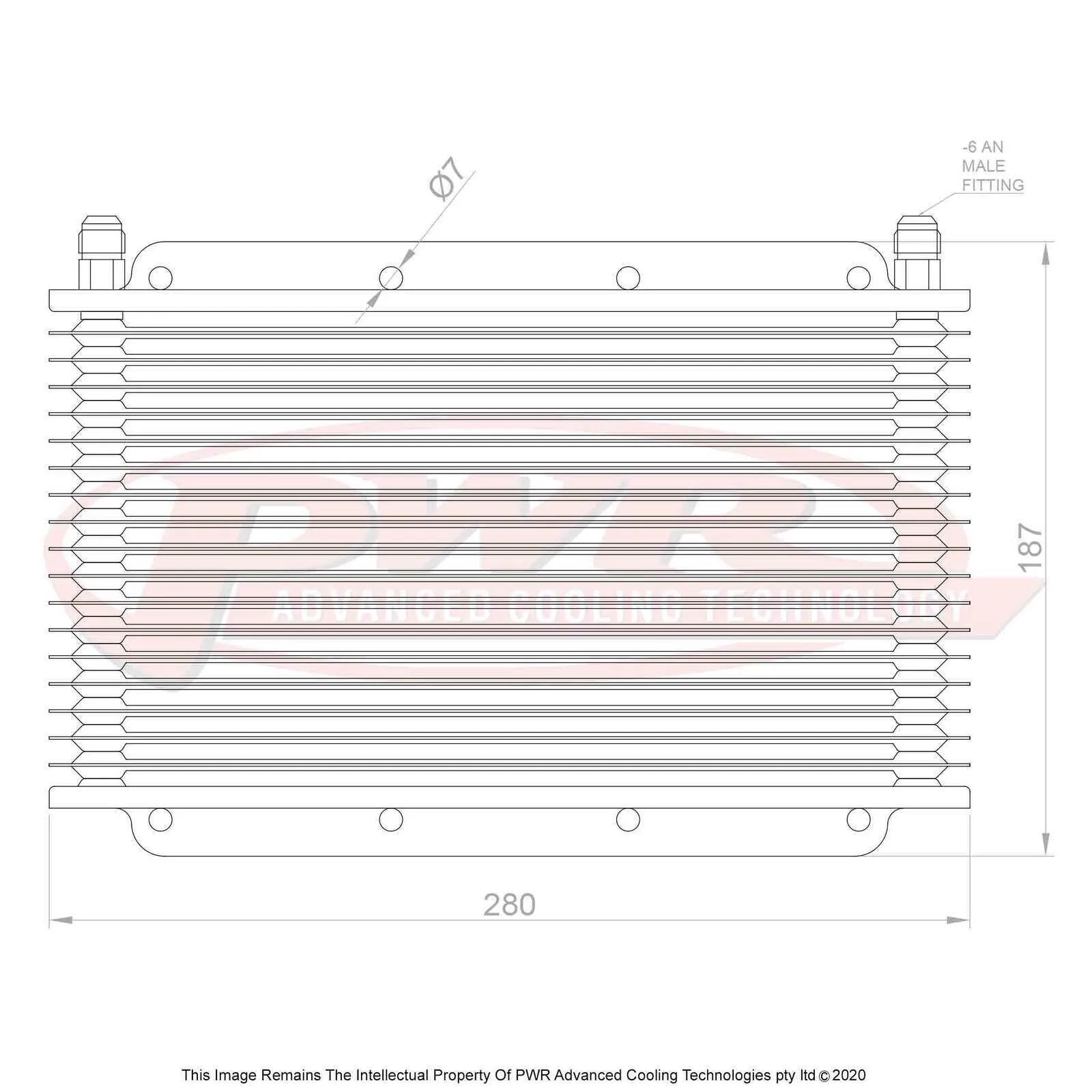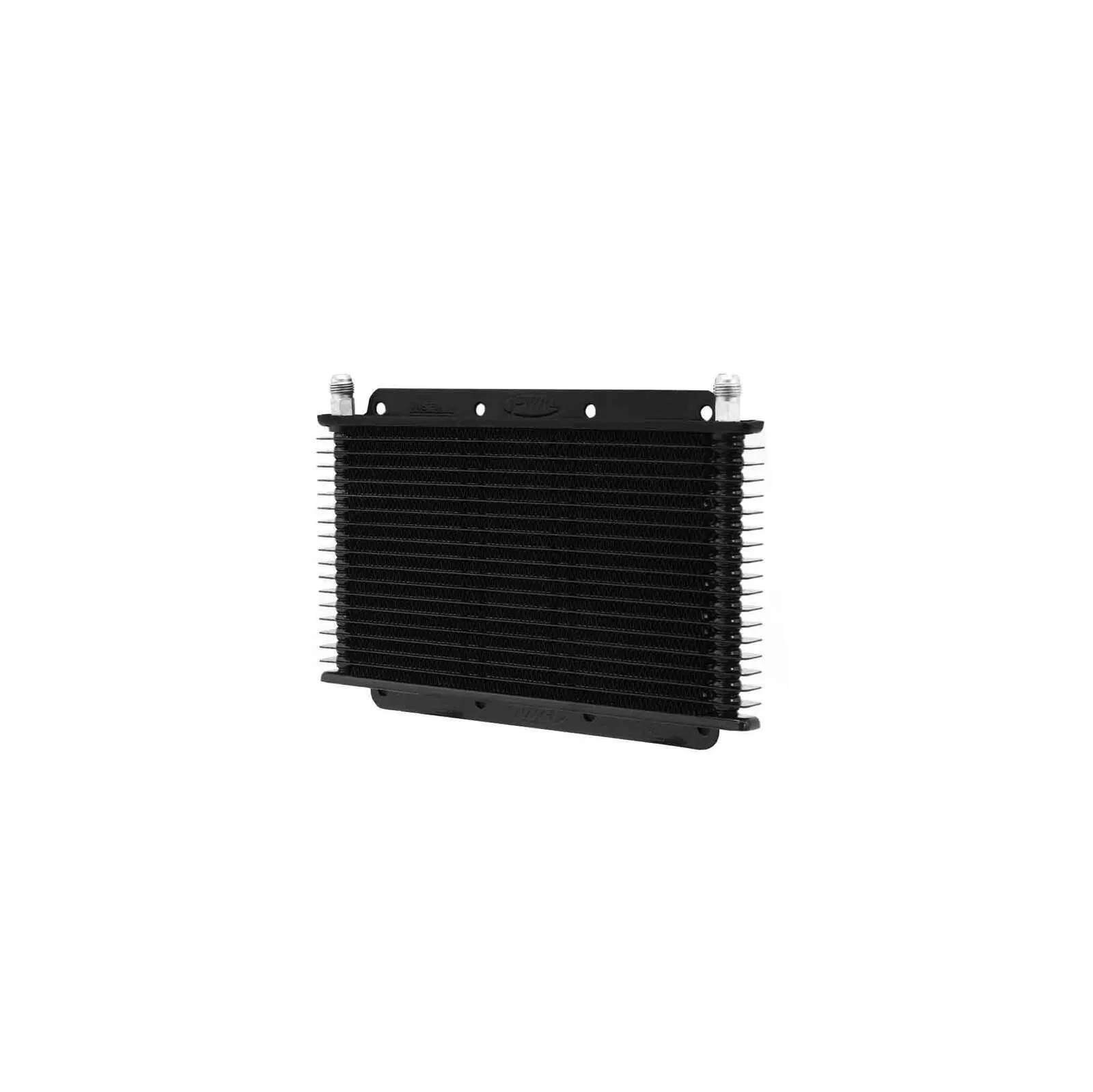 PWR’s patented plate and fin transmission oil coolers are made from 100% aluminium construction which allows the cooler to be made strong, lightweight and compact while offering high heat transfer and corrosion resistance. The plate design turbulates the oil flow and in conjunction with the unique louvered fin design provides highly efficient cooling with low-pressure drop. Manufactured with a 19mm core, these coolers are perfect for automatic transmissions, power steering and differential cooling for race and road applications. Offered with 5/16?, 3/8” or 1/2" push-on hose barbs or Dash -6 AN male threaded fittings. 5/16” and 3/8” can be ordered in kits containing hose, hose clamps and mounting hardware. Custom fittings for specific applications such as thermo switch bosses for thermo fan operation can be special ordered.