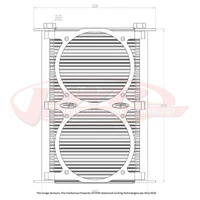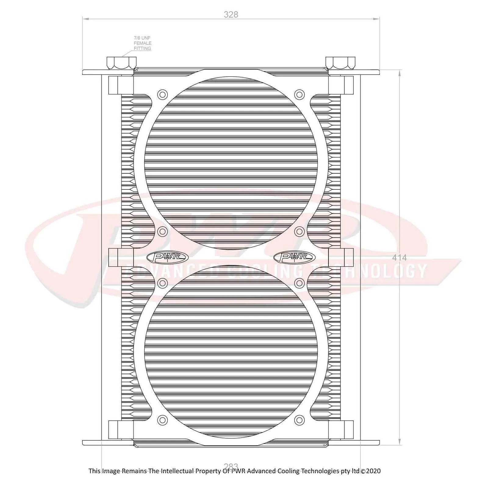 Modern engines run higher oil temperatures and rely on engine oil to assist the water system in cooling the engine. PWR’s patented plate and fin engine oil coolers are made from 100% aluminium construction which allows the cooler to be made strong, lightweight and compact while offering high heat transfer and powdercoated for corrosion resistance. The plate design turbulates the oil flow and in conjunction with the unique louvered fin design provides unequalled heat rejection while offering very low-pressure drop. Manufactured with a 37mm core, these coolers are perfect for engine oil cooling, heavy duty automatic transmission cooling, power steering and differential cooling for race and road applications. All coolers come standard with Dash -10 AN & Dash -12 AN male adapters with Dash -6 AN & Dash -8 AN being alternative options. Custom versions can be special ordered with thermo fan mounts with or without thermo switch bosses.