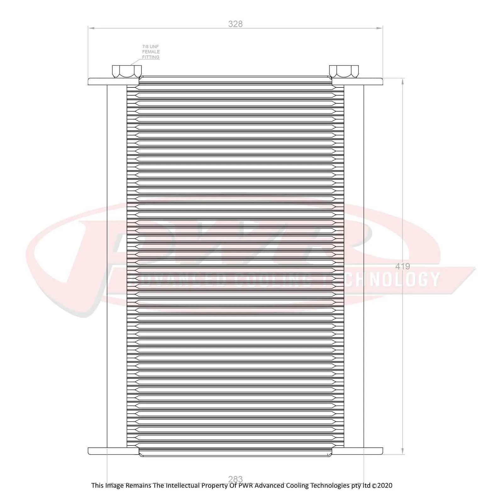 Modern engines run higher oil temperatures and rely on engine oil to assist the water system in cooling the engine. PWR’s patented plate and fin engine oil coolers are made from 100% aluminium construction which allows the cooler to be made strong, lightweight and compact while offering high heat transfer and powdercoated for corrosion resistance. The plate design turbulates the oil flow and in conjunction with the unique louvered fin design provides unequalled heat rejection while offering very low-pressure drop. Manufactured with a 37mm core, these coolers are perfect for engine oil cooling, heavy duty automatic transmission cooling, power steering and differential cooling for race and road applications. All coolers come standard with Dash -10 AN & Dash -12 AN male adapters with Dash -6 AN & Dash -8 AN being alternative options. Custom versions can be special ordered with thermo fan mounts with or without thermo switch bosses.