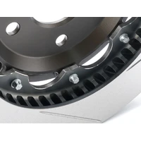 Paragon Performance 2-piece Rotor offers superior braking and cooling efficiency optimized for track and race applications. It features directional ventilation vanes to create suction, turbulence, and guides cool air through the rotor for improved heat dissipation and increased resistance to cracking under harsh track condition.