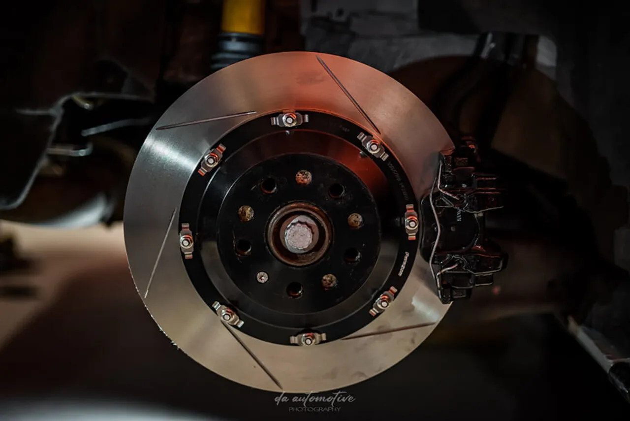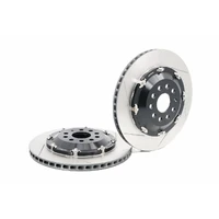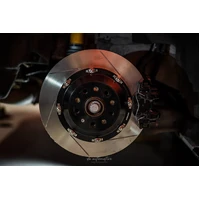 Vibration is reduced as the rotor lateral run-out is kept within 0.03mm and well-balanced: variations are kept within 2 grams. All rotors went through rigorous quality control procedures and inspections to ensure the rotors are fit for their purposes. The fully-floating 2-piece design allows thermal expansion of the rotor while minimizing deformation and ensuring the rotor is self-centered with the pads. A slotted rotor improves braking consistency by maintaining a clean contact surface and dissipate heat generated and gases released when the pads come into contact with the rotors. Slotted rotors have a superior advantage over blank rotors in wet or raining conditions by preventing water films to form between the brake pad and rotor surface. Weighing less than most O.E. rotors while maintaining proper thermal capacity, our 2-piece rotors improves overall handling by saving unsprung mass.