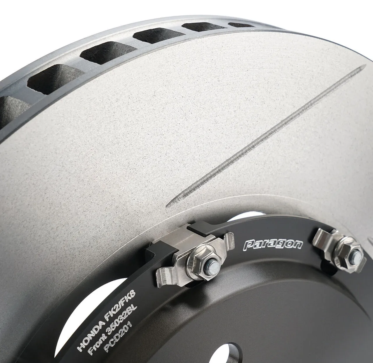 Submit A RequestParagon Performance 2-piece Rotor offers superior braking and cooling efficiency optimized for track and race applications. It features directional ventilation vanes to create suction, turbulence, and guides cool air through the rotor for improved heat dissipation and increased resistance to cracking under harsh track condition.