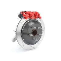 Steel caliper carriers to accommodate larger rotor size (350mm vs. stock size 305mm), paint matched with OEM calipers for improved aesthetics