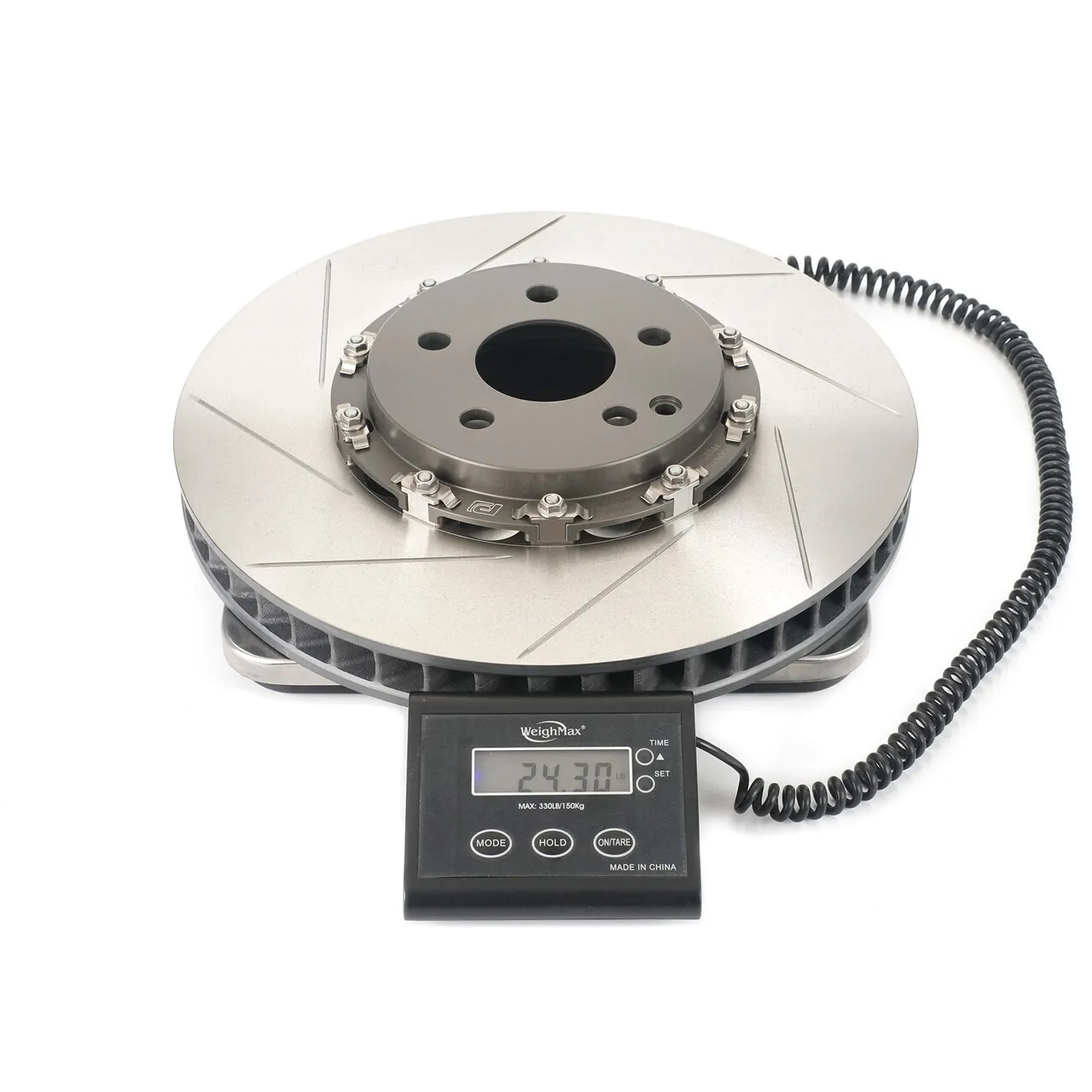 Vibration is reduced as the rotor lateral run-out is kept within 0.03mm and well-balanced: variations are kept within 2 grams. All rotors went through rigorous quality control procedures and inspections to ensure the rotors are fit for their purposes. The floating 2-piece design allows thermal expansion of the rotor while minimizing deformation and ensuring the rotor is self-centered with the pads. A slotted rotor improves braking consistency by maintaining a clean contact surface and dissipate heat generated and gases released when the pads come into contact with the rotors. Slotted rotors have a superior advantage over blank rotors in wet or raining conditions by preventing water films to form between the brake pad and rotor surface. Weighing less than most O.E. rotors while maintaining proper thermal capacity, our 2-piece rotors improves overall handling by saving unsprung mass.