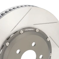 Vibration is reduced as the rotor lateral run-out is kept within 0.03mm and well-balanced: variations are kept within 2 grams. All rotors went through rigorous quality control procedures and inspections to ensure the rotors are fit for their purposes. The floating 2-piece design allows thermal expansion of the rotor while minimizing deformation and ensuring the rotor is self-centered with the pads. A slotted rotor improves braking consistency by maintaining a clean contact surface and dissipate heat generated and gases released when the pads come into contact with the rotors. Slotted rotors have a superior advantage over blank rotors in wet or raining conditions by preventing water films to form between the brake pad and rotor surface. Weighing less than most O.E. rotors while maintaining proper thermal capacity, our 2-piece rotors improves overall handling by saving unsprung mass.