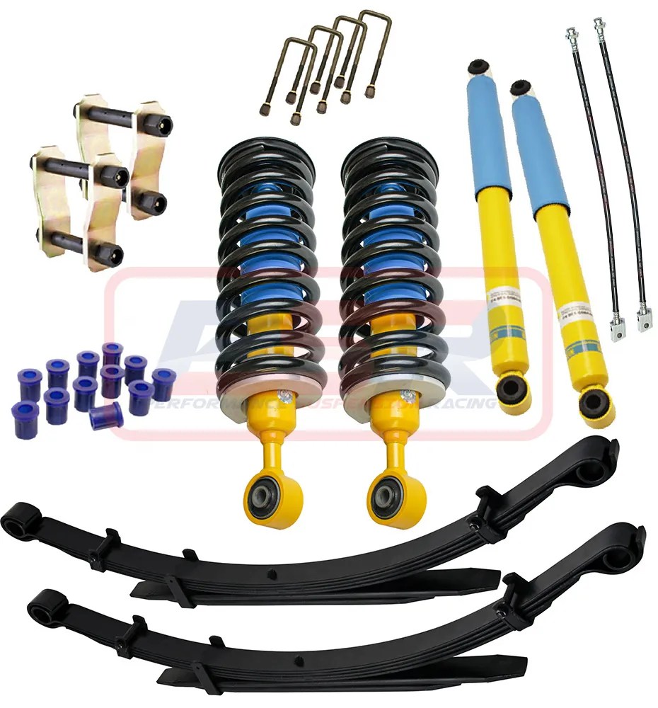 This kit contains Bilstein front struts all pre-assembled with King coil springs and HD strut tops, EFS Leaf springs, U-bolts, new Leaf bushes and Bilstein Long Travel rear shocks.