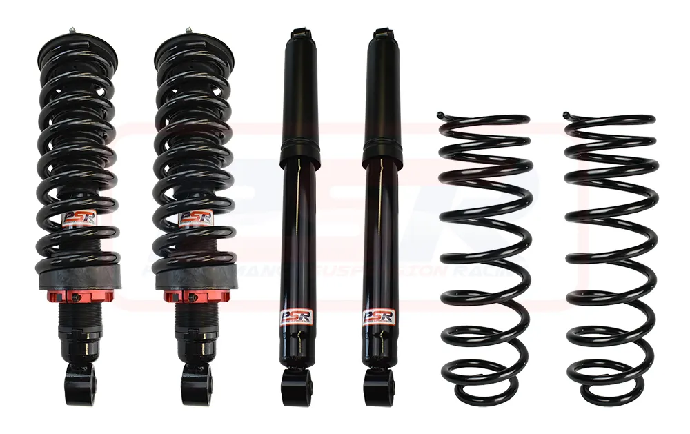 This kit contains PSR TTG front struts all pre-assembled with Kings coil springs and HD strut tops, King Springs 1" rear coils, PSR TTG rear shocks.