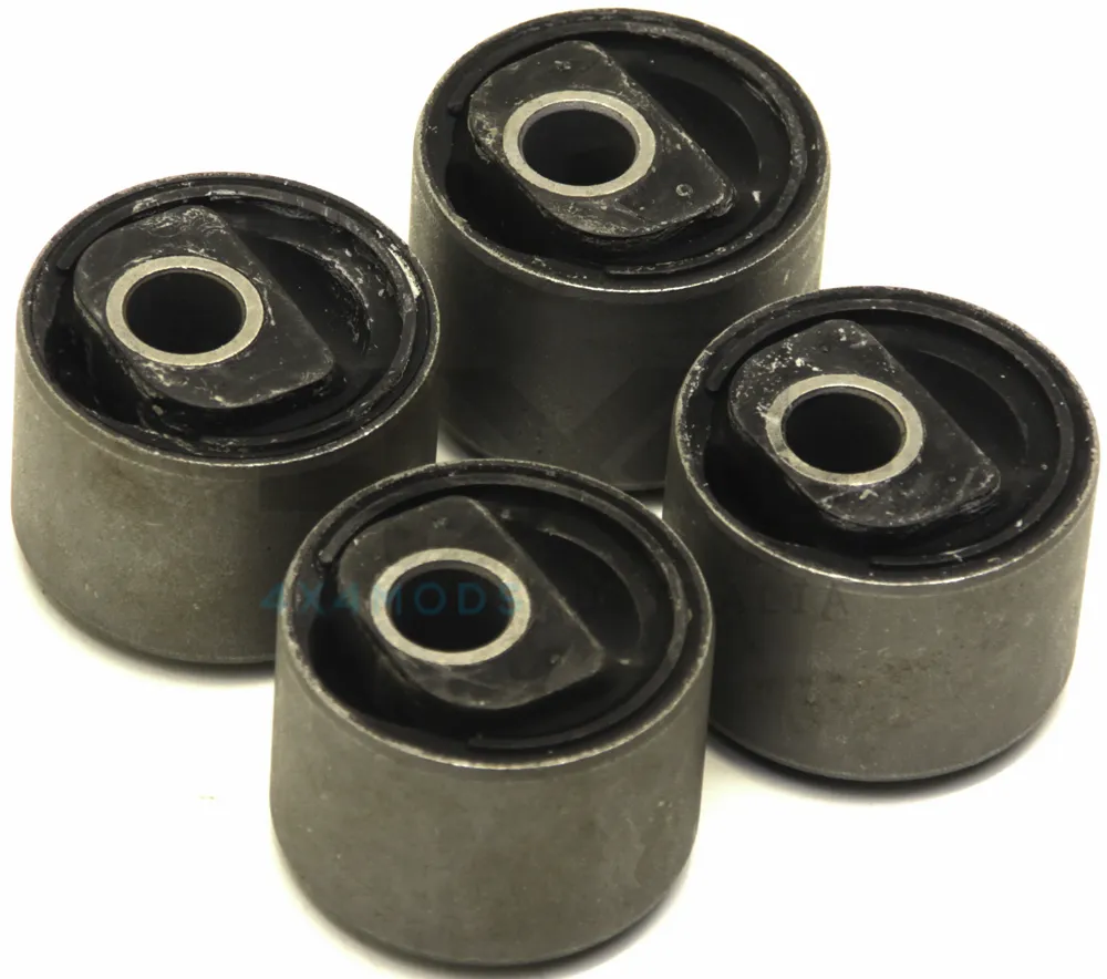 PSR's offset caster bush in rubber is specifically designed for maximum bush articulation. Suited to a 2-3" suspension lift these bushes will rotate the diff on its axis to correct the loss of caster after a lift and also realigns the pinion angle of the front diff. If a lift larger than 3" is fitted it is suggested to run caster plates or drop boxes.