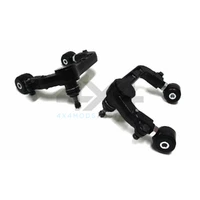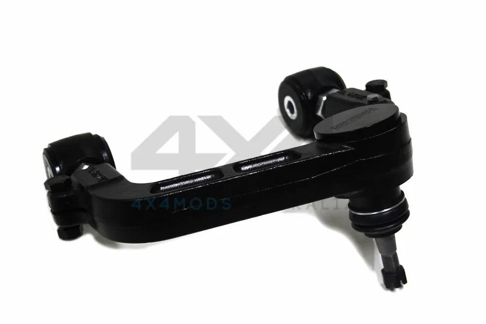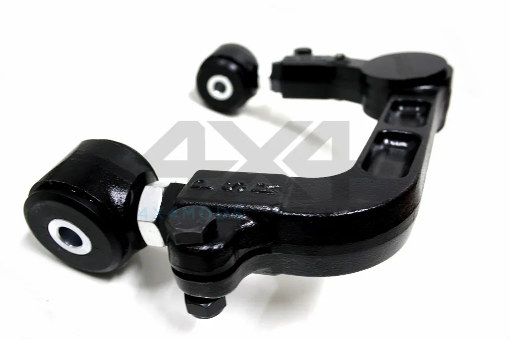 PSR's Toyota Hilux N70 / N80 Adjustable Upper Control Arms are without a doubt the strongest upper arm on the market featuring a forged design of both the bush housings and main arm. This means, coupled with a heavy duty ball joint design and Aussie made inner pivot bushes it's the ultimate replacement when lifting your vehicle and wanting an alignment solution with extra clearance to the coil spring for more down travel. Other control arms on the market feature a sliding ball joint design for adjustment, this is a poor design when wheel aligning as it requires unloading the suspension to stop the ball joint from sliding inwards with the vehicles weight, meaning a poor wheel alignment is achieved due to unsettling the suspension. Another major feature is the OE sized ball joint housing, if a ball joint is ever damaged a locally sourced ball joint can be installed getting you out of trouble. Control arms run the PSRHIL-001 extended ball joints.
