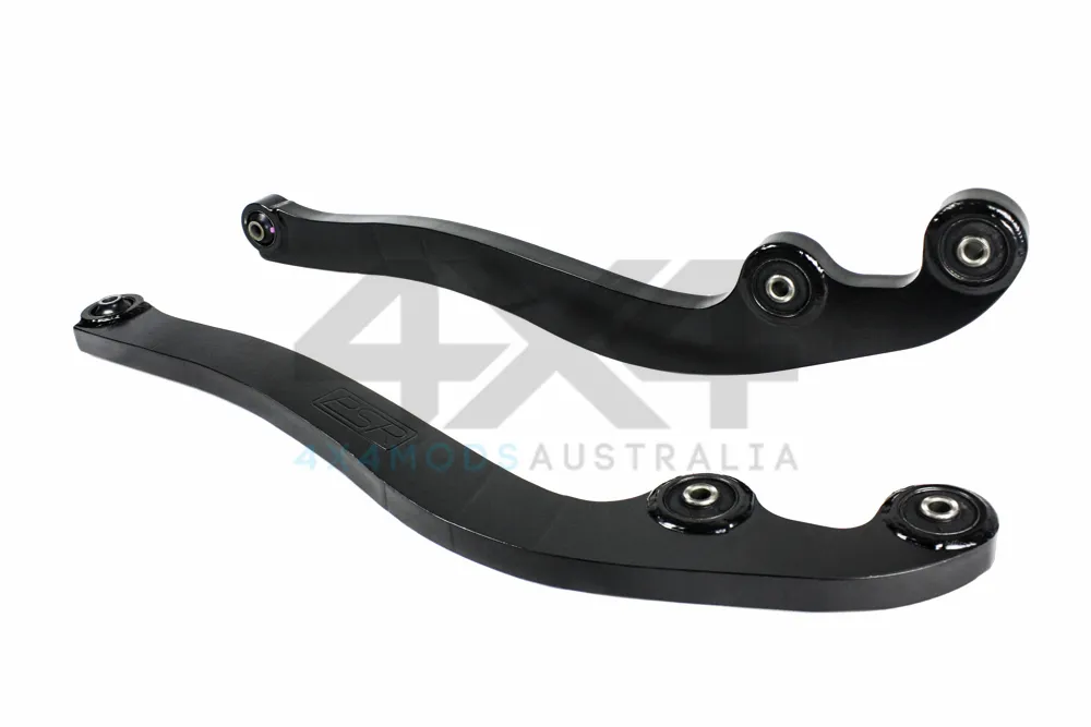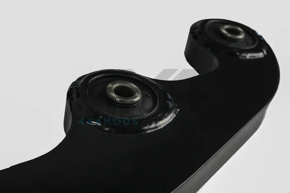 PSR Toyota Landcruiser 70 Series Radius Arms to suit Series 2 with DPF are supplied in various castor correction configurations to suit a 2" lift. The PSR curved radius arms have undergone a huge amount of RnD to allow multiple variations of components to work together achieving various configurations of lift and suspension setup. Manufactured in Australia from 32mm 700MPA BIZ80 plate, we use strict engineering guidelines for our welding procedure to achieve the strongest possible product. Another key feature is how the arm is folded, unlike competitor's products our arms are folded in 3 places, or bump folded, per curve as opposed to a single fold meaning a far stronger arm in your vehicle. Also some competitor's products allow contact with the sway bar under full bump! Arms are then sandblasted, etch primed and painted black for a factory look and fitted with a genuine bush guaranteed every time! Look for the machined PSR logo on the outside of the arm to assure a quality product.