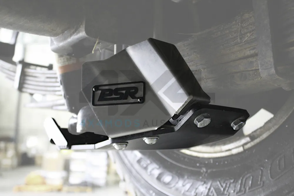 PSR's Toyota Landcruiser 70 Series Leaf Spring Glide Plate Shock Guard. Manufactured from 3mm stainless and TIG welded this item will protect your shock absorbers from the impact from most rock and other underbody damaging items. The Glide plate system will work with any variation of shock and leaf spring, the shock guard will not work with sway bars. Will only work with PSR Toyota Landcruiser 70 Series Leaf Spring Glide Plate.