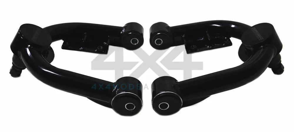 Tube design with adjustable droop limiting plates to dial out CV bind. High clearance for larger shocks. Australian Polyurethane bushes on inner pivot, replaceable ball joint. Painted Black.