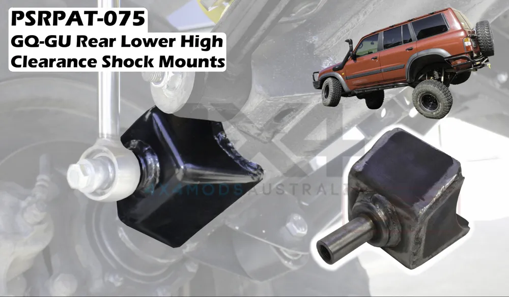 PSR's Nissan Patrol GQ-GU Rear Lower High Clearance Shock Mounts are a weld on mount that replaces the factory location on the diff. This is an area which can greatly improve the rear suspension through modified mounting heights to suit different shock lengths, achieving desired travel of your rear suspension. Depending on requirements both the diff and the chassis mounts can be modified.