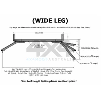 Further to these functions there are 4 differing leg heights, 1/4 leg height sitting 105mm above top of tub line, 1/2 height at 230mm above tub line, 3/4 height at 405mm above tub line and Roof Height leg set which is based on individual vehicle heights to sit the top of the tubing 70mm above roof top to allow coupling to roof racks.