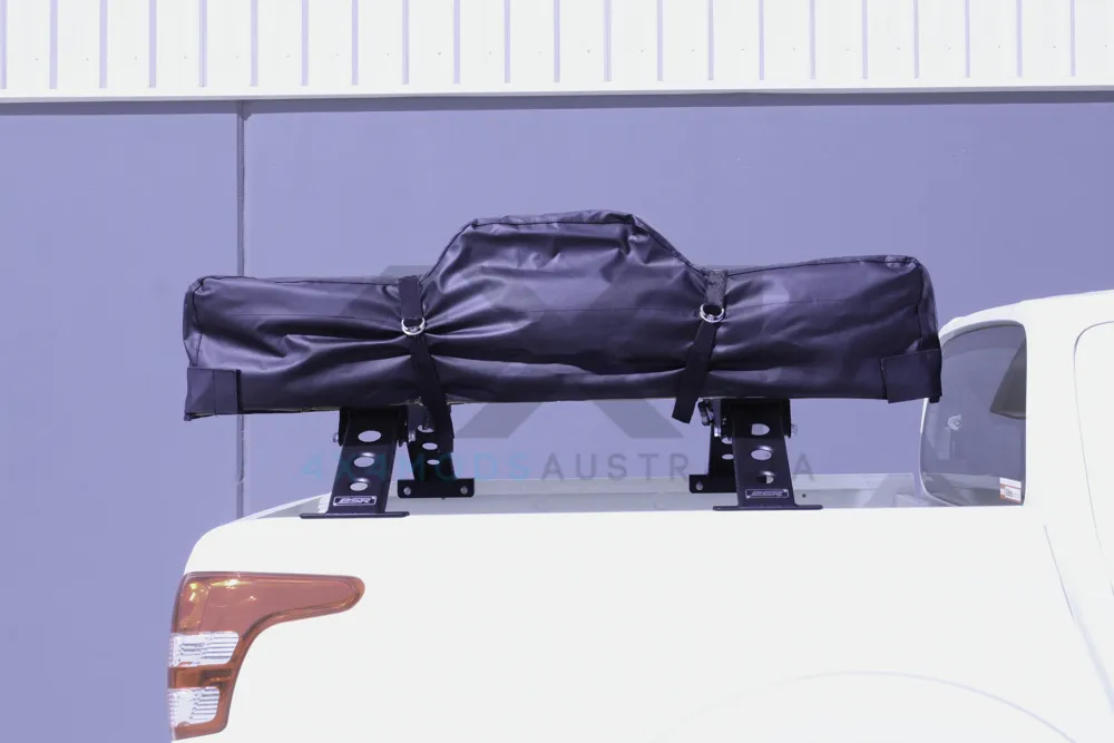 PSR has designed a Baja style Roof Top Tent mount to sit your Roof Top Tent over your tray. Suits ALL ute tubs between 1370mm and 1560mm tub width which is all your common cars, Hilux/Navara/Triton/Colorado/D-MAX/Amarok/Ranger/BT-50 etc. Powder-coated Black.