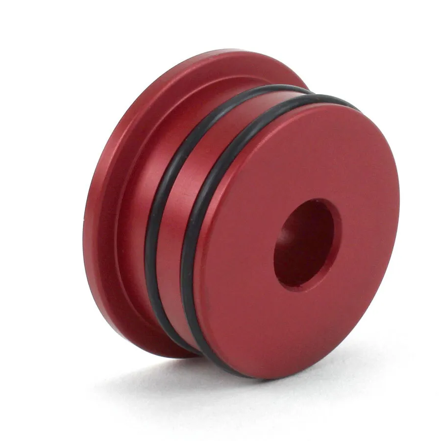 Anodized red with a laser etched PERRIN logo, the finish is both sleek and helps protect the part for many years to come.